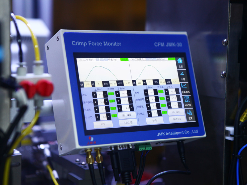 JM-601B可選裝壓力監(jiān)測系統(tǒng)和CCD影像檢測系統(tǒng),能夠?qū)崟r顯示產(chǎn)品影像和壓接力曲線,并進行對比分析、壓接不良時會發(fā)出警報并自動分揀出不良品。加工全過程質(zhì)量監(jiān)控,極大地節(jié)省了人工成本,保證產(chǎn)品質(zhì)量,提高了生產(chǎn)效率。